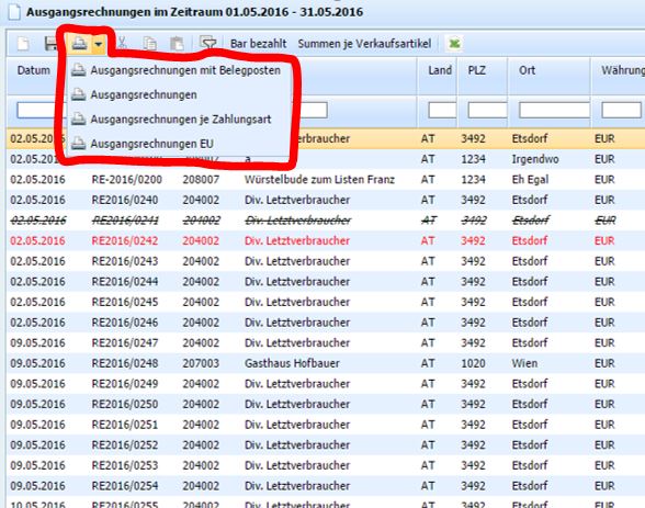 Die Auswertung zeigt die Ausgangsrechnungen in einem frei wählbaren Zeitraum.