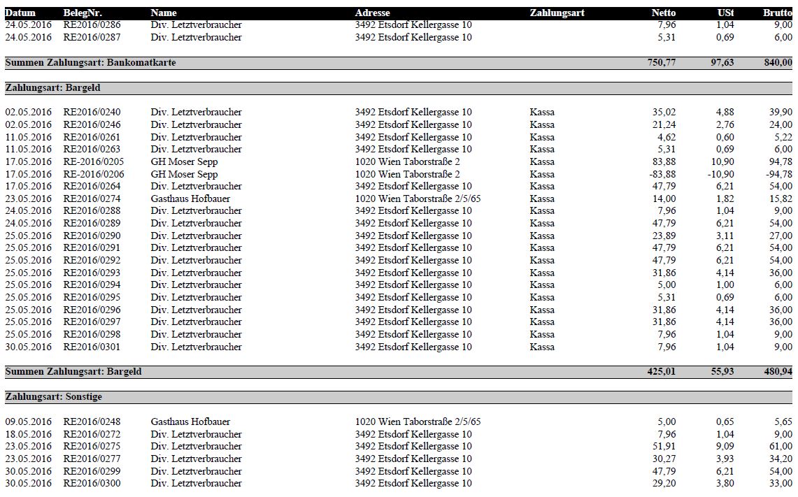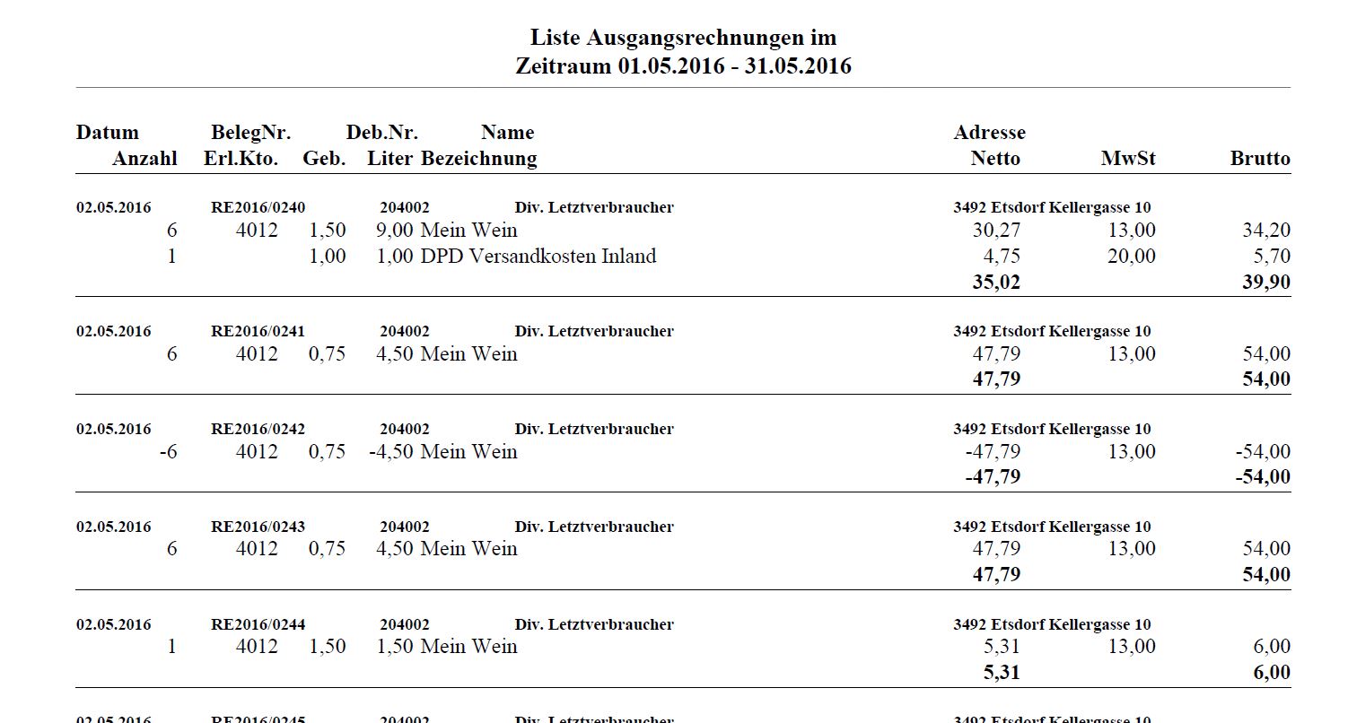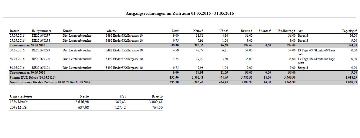 - Ausgangsrechnungen (aufsummiert nach USt.)