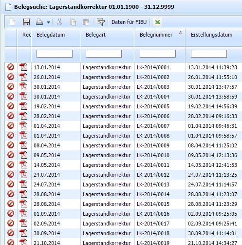 Die Auswertung zeigt die Lagerstandskorrekturbelege in einem frei wählbaren Zeitraum.
